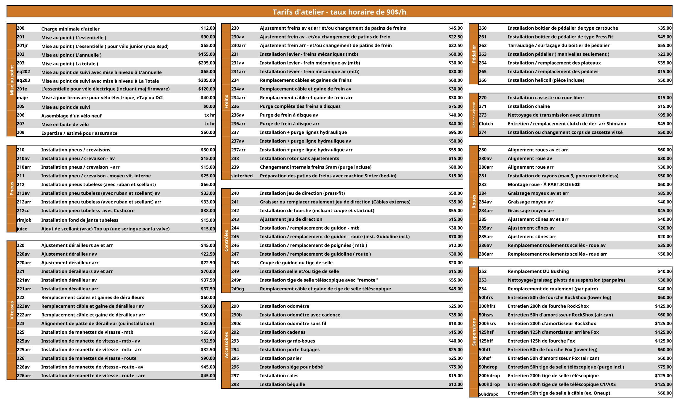 Vélozophie is offering a great range of services that you can choose and mix as you will. We offer other à la carte services, but it would take too big a table to display them all!